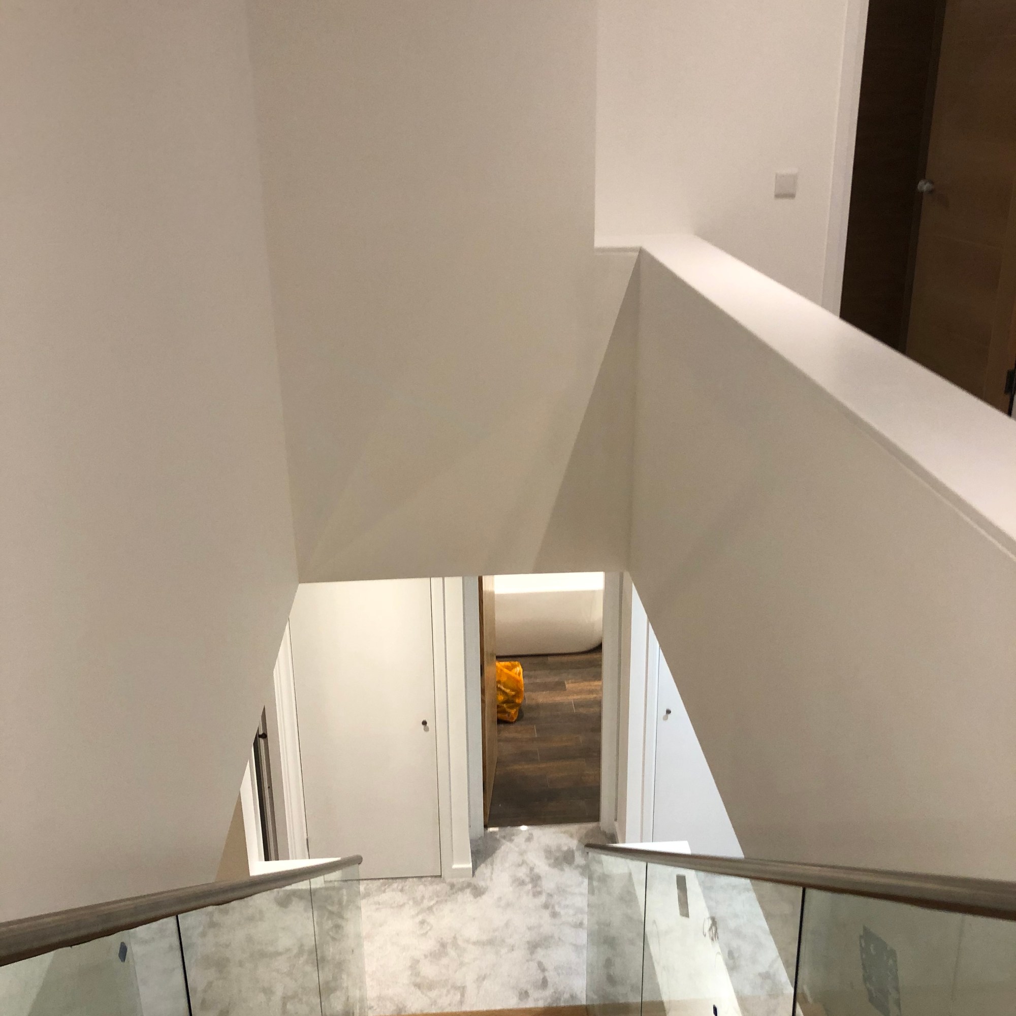New build home decoration near Consett. All walls and woodwork finished in Johnstone’s Brilliant White, a bright modern family home.