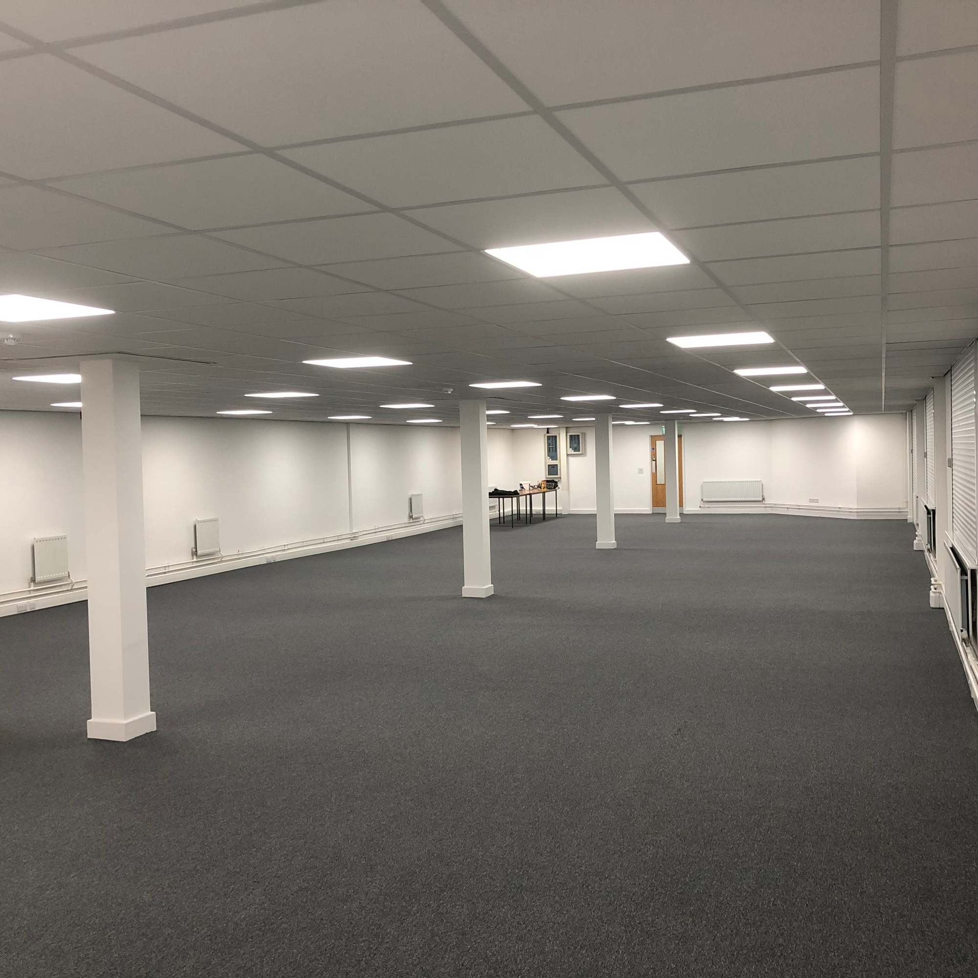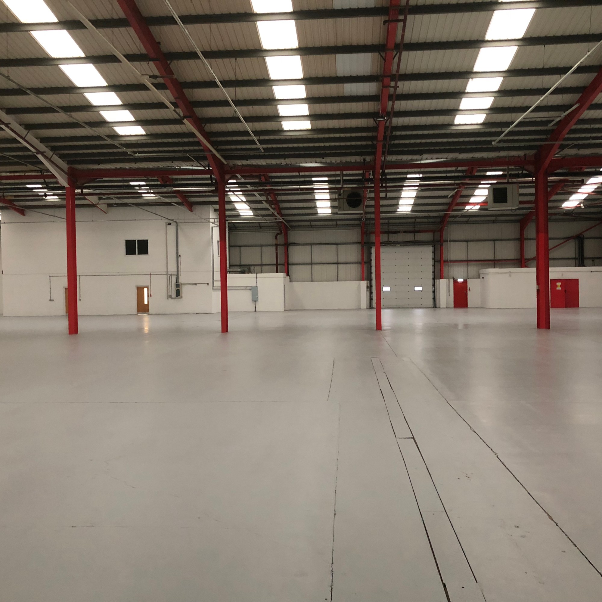 Commercial warehouse and offices decoration in Tynemouth. 5500 square meters of flooring repainted with Johnstone’s 2 Pac water based floor paint. Lower 3m of steel columns and perimeter walls repainted. All office walls and woodwork painted in white. Exterior downpipes, guttering and corrugated paneling repainted.