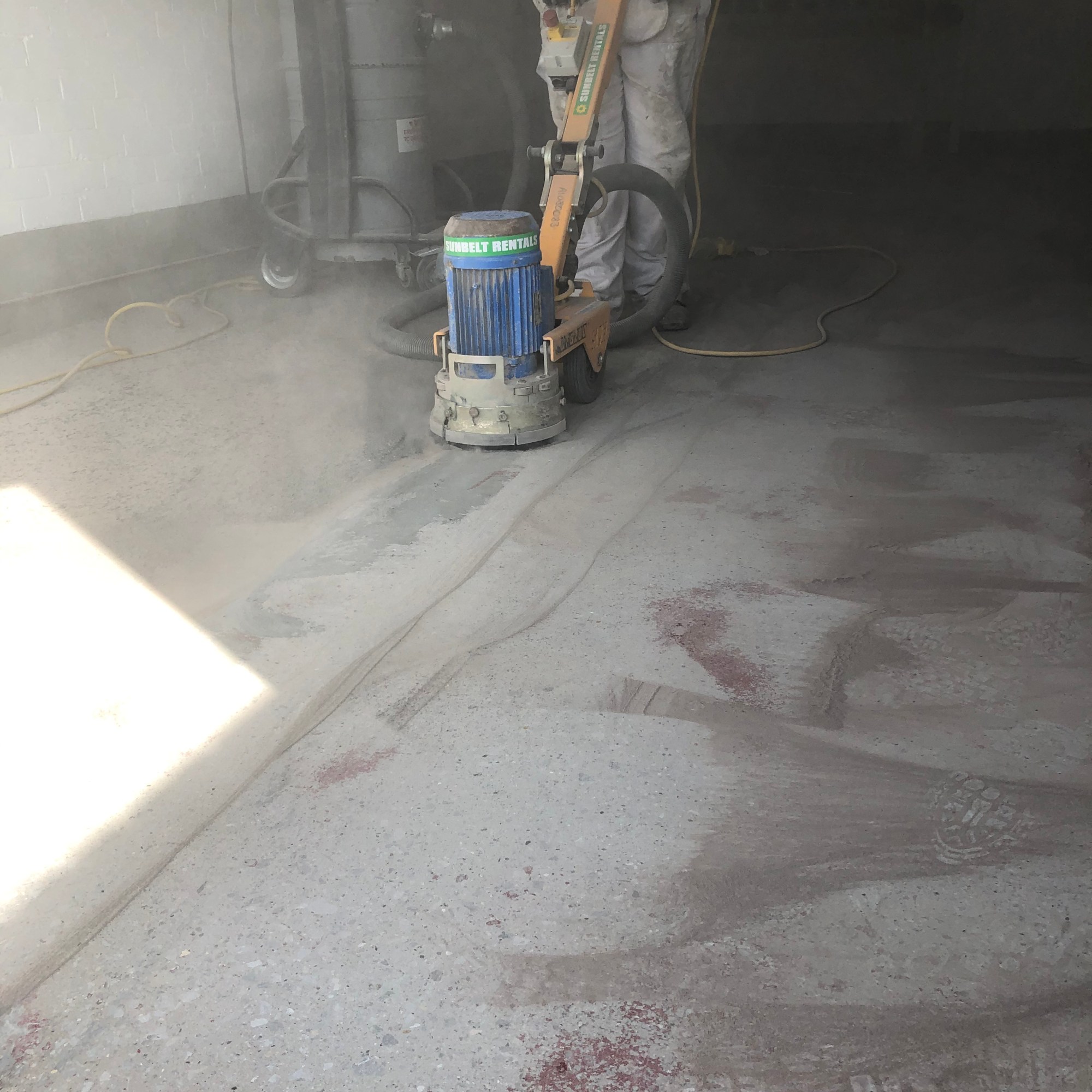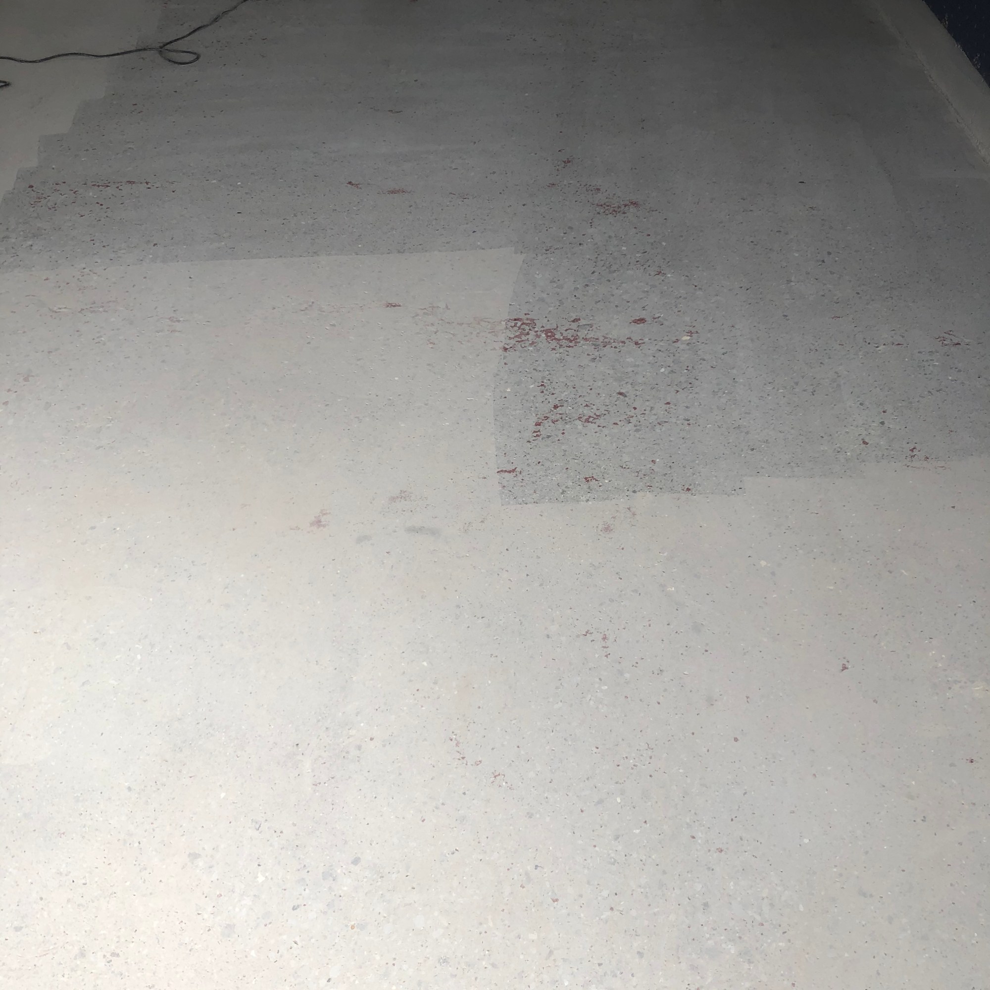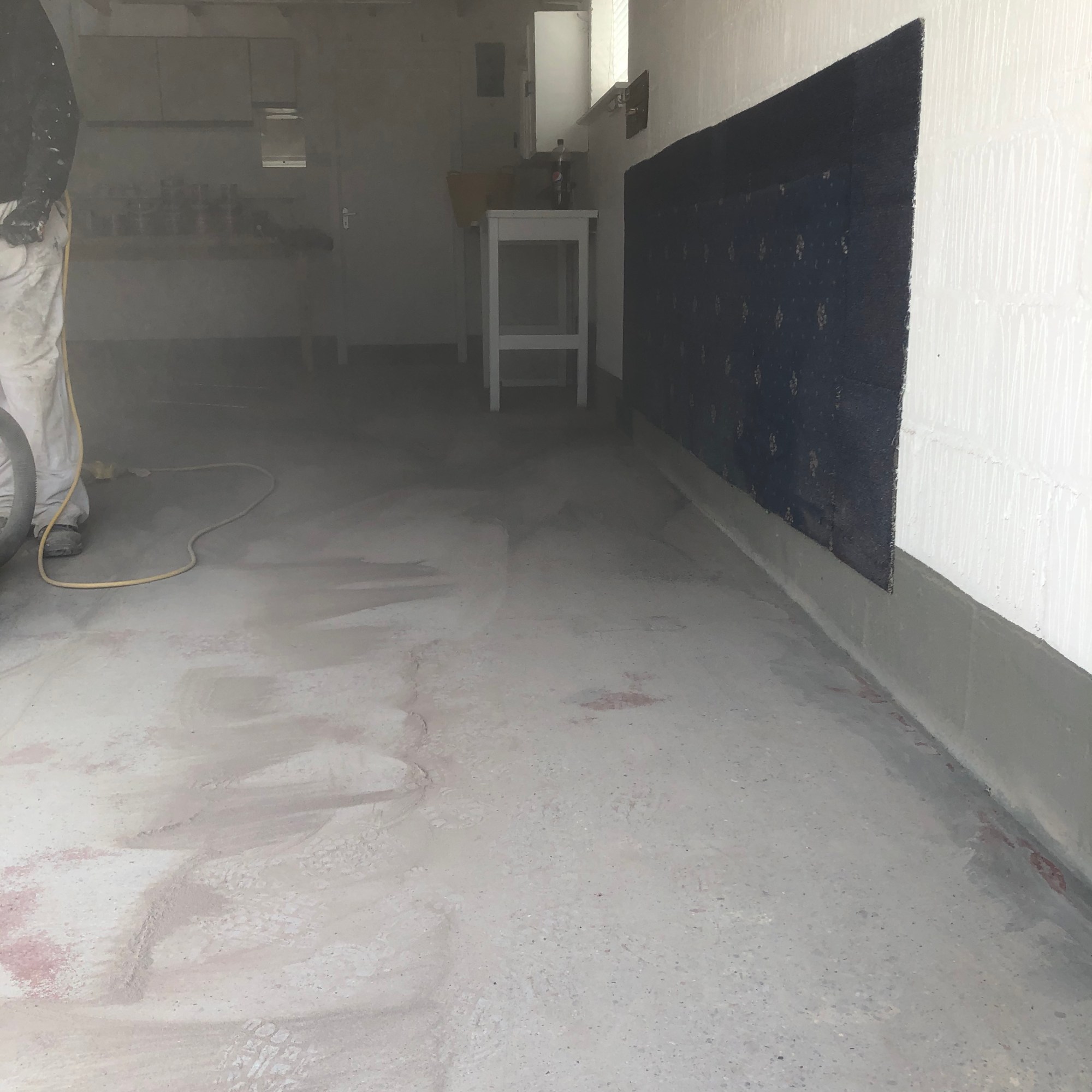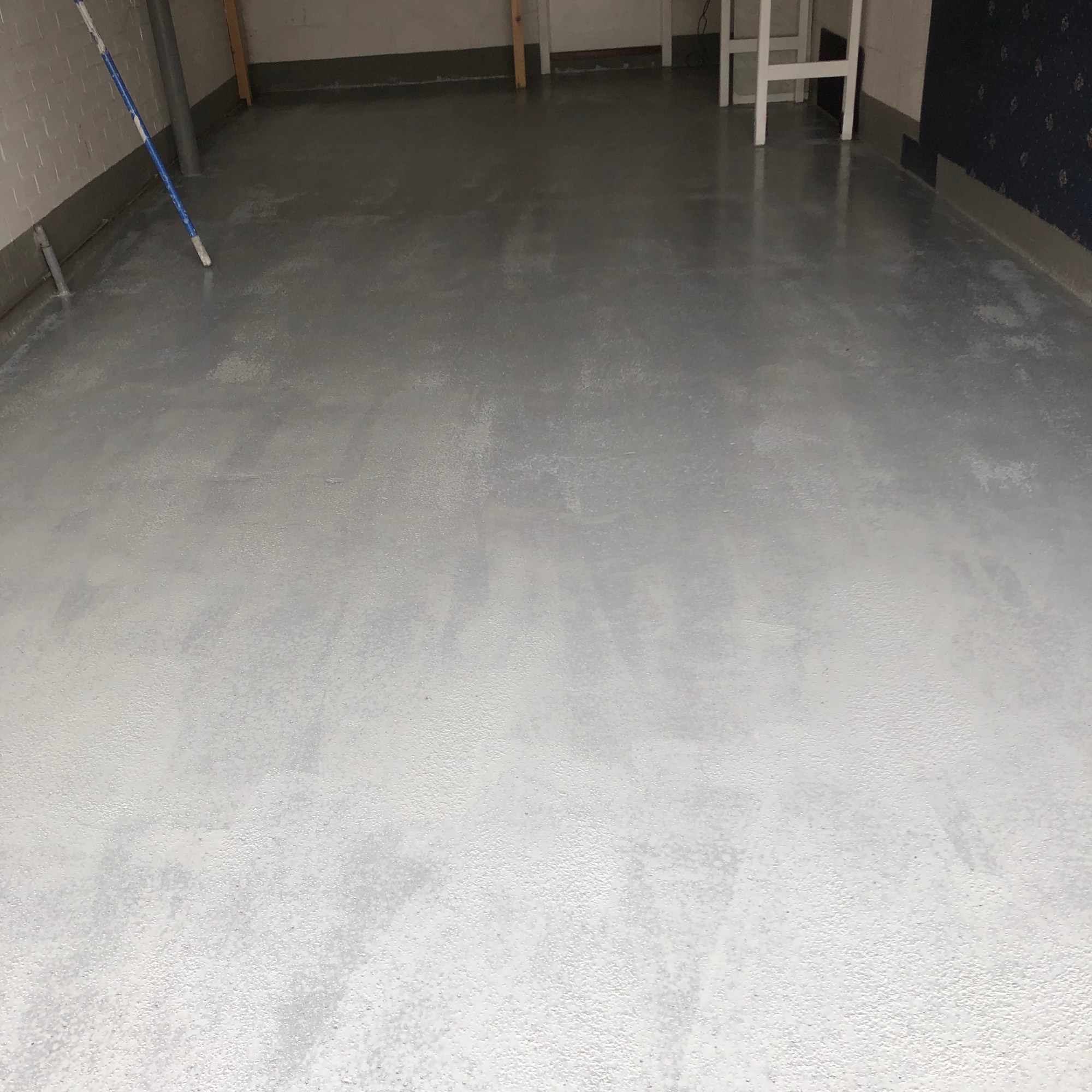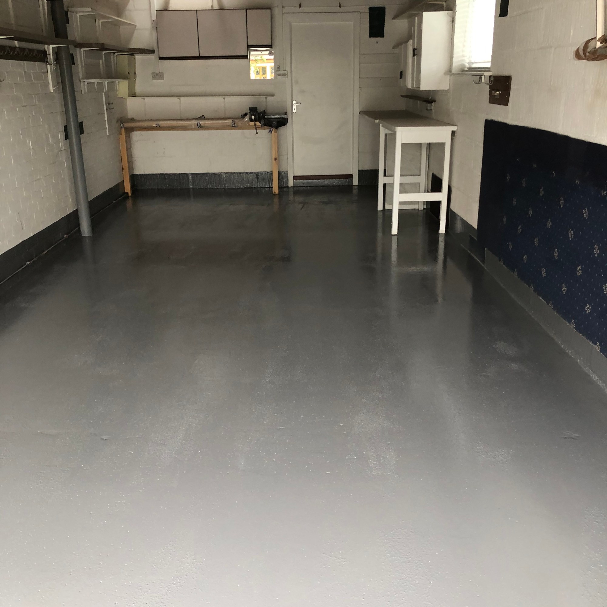 Garage floor in Durham City. Old paint fully removed revealing original concrete floor, floor then acid etched, anti-slip grit applied and two coats of Coo-Var Profloor Plus floor paint.