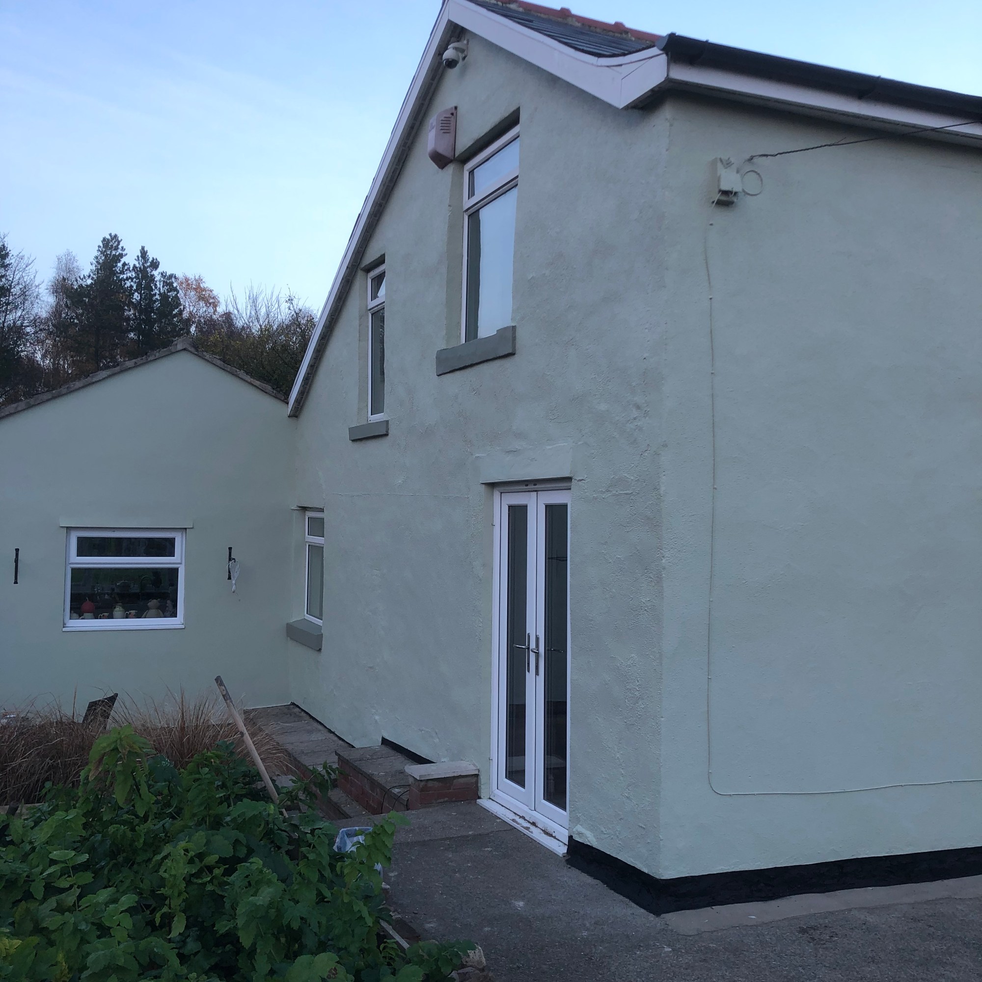 Exterior treated in anti-fungal wash and full exterior repaint in Johnstone’s Masonry Brilliant White.